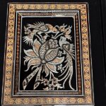 ست نفیس خاتمکاری شامل تابلو و قلمدان.