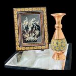 ست هدیه خاتم کاری شامل گلدان ۱۶cm و تابلو گل مسی