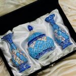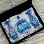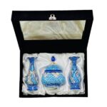 پک هدیه میناکاری جفت گلدان و قندان با جعبه مخمل دست‌ساز